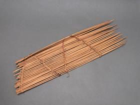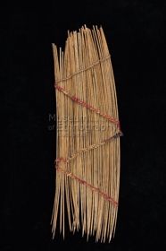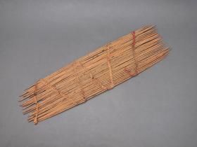- Bambuszból készített, szélességében hajló, hosszú téglalap alakú tárgy. A nódusz osztja két részre: alsón kilenc hegyes ág. Felső vége két vizsintesen elkülönülő áttört faragással díszített részre oszlik. Függőleges és vizszintes áttörések váltják egymást. Biro jegyzet 552 o