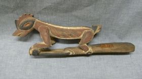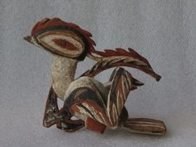 - Könnyű fából faragott, madáralakú csónakorrdísz. Színezése fehér, fekete és vörös.