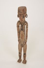 - Puhafából faragott bot, melyen legfelül egy meztelen, álló férfi található, aki lábai között halat tart. Alatta egy emberi fej, legalul pedig síkdombormű-szerűen kifaragott geometrikus motívumok, illetve egymás kezét fogó emberalakok láthatók.