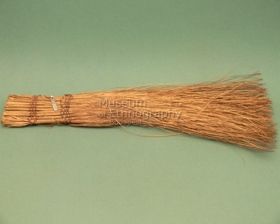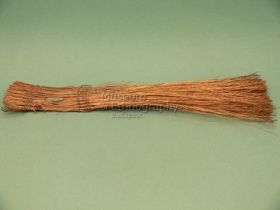 - Vékony sallangokra hasított, világos-okker levelek. Alakja megnyúlt téglalap. Egyik végén három helyen seprőkötéssel szorosan összetartott. A kötés barna rostanyag. Az alsó kötés felett az egyik oldalon három fokozatos lépcsőt képezve hajlik vissza a hasított levélzet.