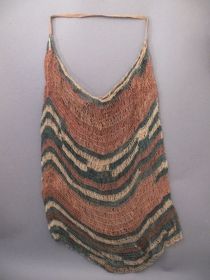 - Növényrostokból készített, hurkolt technikával, barnás, vörös és vöröses színezésű sávokkal díszített, nagy öblű egy fülű szatyor. Függőlegesen barna, fekete, vörös és fekete sávok váltják egymást. Bíró-jegyzet: 510.