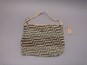 - Növényrostokból, hurkolt technikával készített, egy hosszú fülű táska, melynek mindkét oldalát világosbarna és kopott fekete csíkok díszítik, egy helyen vöröses csíkkal. Bíró-jegyzet: 509/i.