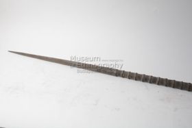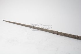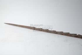 - Egyrészes dárda. Keményfából faragott, hengeres keresztmetszetű, mindkét vége felé elvékonyodik.