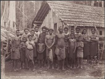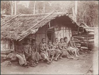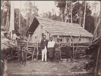 A group of villagers at the landing place on Qarea, Solomon Islands, 1906 / J.W. Beattie