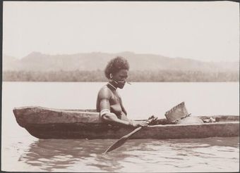 Canoers at the western entrance of Port Adam, Malaita, Solomon Islands, 1906 / J.W. Beattie