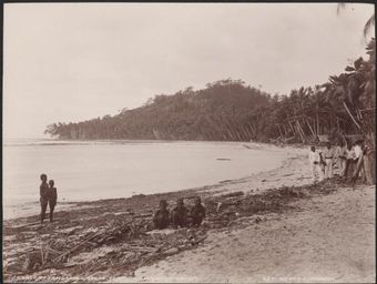 A family on the beach at Longapollo, Solomon Islands, 1906 / J.W. Beattie