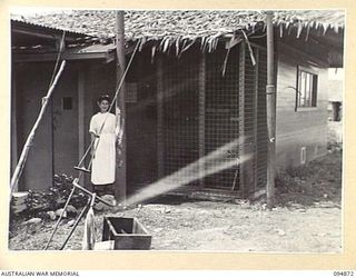 LAE AREA, NEW GUINEA. 1945-08-11. CORPORAL A. WILLIAMS, OUTSIDE AN AIR CONDITIONED WARD OF 2/7 GENERAL HOSPITALAustralian War MemorialImage Papua New Guinea Online