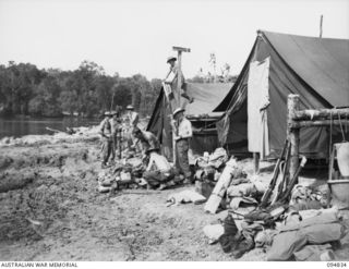 JACQUINOT BAY, NEW BRITAIN, 1945-08-08. TROOPS OF 41 LANDING CRAFT COMPANY PACKING GEAR BEFORE EMBARKING FOR BORNEO BY LANDING SHIP, TANK (LST). THEIR BARGES WERE LEFT BEHIND AT JACQUINOT FOR USE ..Australian War MemorialImage Papua New Guinea Online