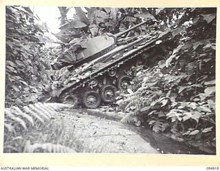 TOROKINA AREA, BOUGAINVILLE, 1945-08-08. AN M24 GENERAL CHAFFEE LIGHT TANK CLIMBING UP THE THREE FOOT BANK AFTER CROSSING A CREEK BED, DURING TRIALS CONDUCTED FOR THE WAR OFFICEAustralian War MemorialImage Papua New Guinea Online