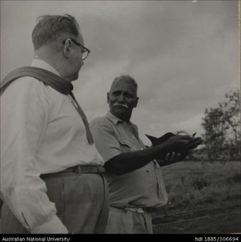 Field Officer speaking with Indian farmerAustralian National University LibraryImage Fiji 1950 to 2023