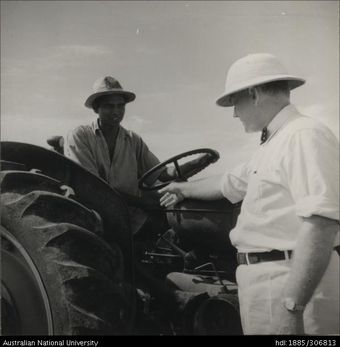 Officers instructing FarmersAustralian National University LibraryImage Fiji 1950 to 2023