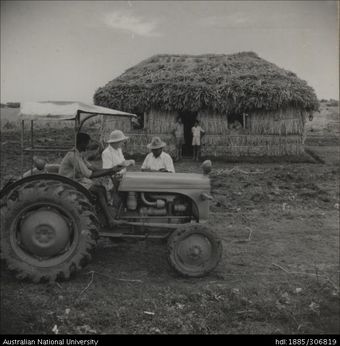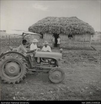 Famer on tractor with Field OfficerAustralian National University LibraryImage Fiji 1950 to 2023 -