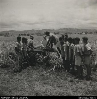 Officers instructing FarmersAustralian National University LibraryImage Fiji 1950 to 2023