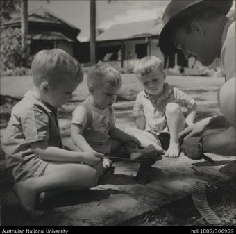 Officer with his childrenAustralian National University LibraryImage Fiji 1950 to 2023 -
