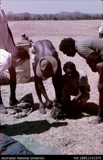 Men holding an echidnaAustralian National University LibraryImage Papua New Guinea 1960 to 2021 Online -