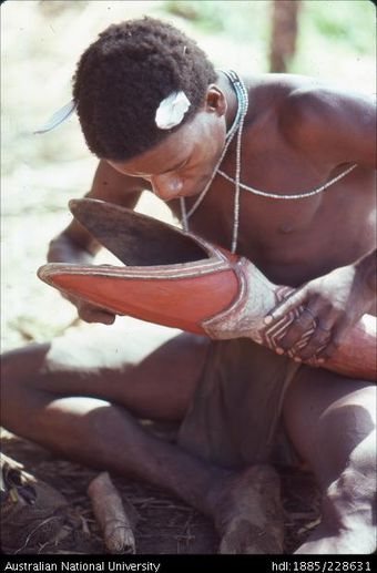 Decoration of a drum in preparation for use in a ceremonyAustralian National University LibraryImage Papua New Guinea 1979 to 2021 Online -
