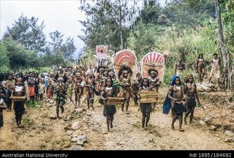 Kotuni - sing-sing approachingAustralian National University LibraryImage Papua New Guinea 1958 to 2019 Online -