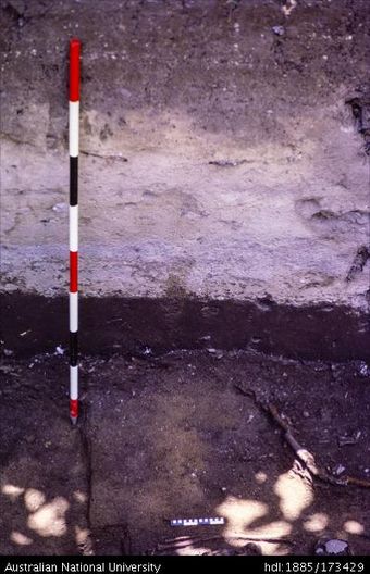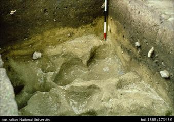Rectangle III with features at base of Zone C-2 including a stone alignment seaward of burial areaAustralian National University LibraryImage Papua New Guinea 1960 to 2019 Online -