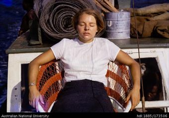 Sheila Specht on workboat TO VuatomAustralian National University LibraryImage Papua New Guinea 1966 to 2019 Online