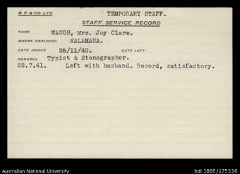 Waugh, Mrs. Joy ClareAustralian National University LibraryImage Papua New Guinea 1947 to 2019 Online -