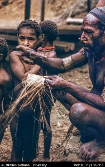 Nondugl - making of rattan cane armbandAustralian National University LibraryImage Papua New Guinea 1958 to 2019 Online -