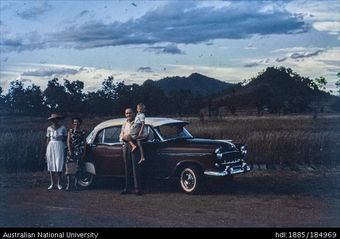 Family and car, mountains in distanceAustralian National University LibraryImage Papua New Guinea 1950 to 2019 Online -