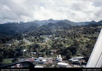 Approaching Alotau from helicopter. Alotau is the Milne Bay Provincial capitalAustralian National University LibraryImage Papua New Guinea Online -