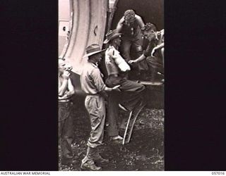 NADZAB AIRSTRIP, NEW GUINEA. 1943-09-18. QX25075 PRIVATE W. S. BRUMMELL BEING ASSISTED INTO AN AIRCRAFT TO BE TAKEN BACK TO THE HOSPITAL AT PORT MORESBYAustralian War MemorialImage Papua New Guinea Online
