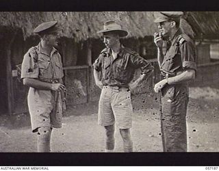 PORT MORESBY, NEW GUINEA. 1943-08-29. MEMBERS OF THE AUSTRALIAN MILITARY HISTORY SECTION ATTACHED TO THE NEW GUINEA FORCE. LEFT TO RIGHT: WARRANT OFFICER 1 C. T. HALMARICK; LANCE SERGEANT N. B. ..Australian War MemorialImage Papua New Guinea Online