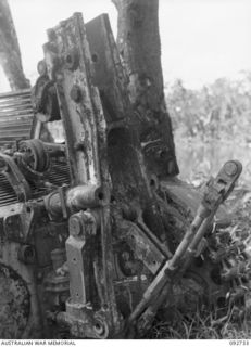 WEWAK AREA, NEW GUINEA, 1945-05-28. A WINCH-LIKE ATTACHMENT ON THE REAR OF A KNOCKED OUT JAPANESE TYPE 97 CHI-HA ENGINEERING RECOVERY TANK WHICH WAS FOUND NEAR BORAM IN THE HQ 6 DIVISION AREAAustralian War MemorialImage Papua New Guinea Online