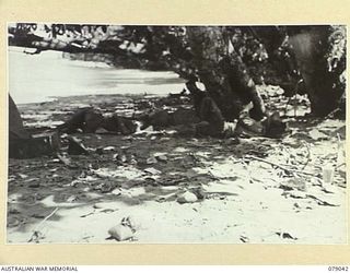 TSIMBA AREA, BOUGAINVILLE ISLAND. 1945-02-07/06. A MORTAR CREW OF THE 31/51ST INFANTRY BATTALION RESTING ON THE BEACH AFTER BEING ENGAGED IN AN ACTION AGAINST THE JAPANESE FORCES IN THE AREAAustralian War MemorialImage Papua New Guinea Online