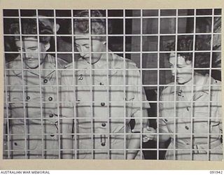 LAE, NEW GUINEA, 1945-05-18. SIGNALWOMAN V.M. JOHNSON (1), AND CORPORAL B.J. STOTT (2), PERSONNEL FROM THE AUSTRALIAN WOMEN'S ARMY SERVICE BARRACKS, TAKING PART IN AN ARMY AMENITIES TOUR OF THE ..Australian War MemorialImage Papua New Guinea Online