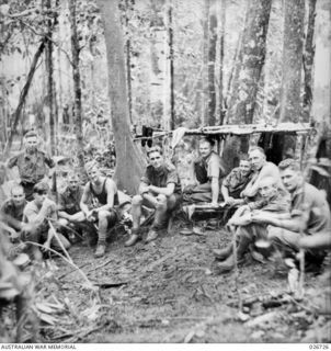 PAPUA. 1942-09. MEN OF THE 2/14TH INFANTRY BATTALION, VETERANS OF THE MIDDLE EAST, HAVE A REST NEAR THEIR POSITIONS ON A RIDGE OVERLOOKING THE VALLEY TO IORIBAIWA IN THE OWEN STANLEY RANGESAustralian War MemorialImage Papua New Guinea Online