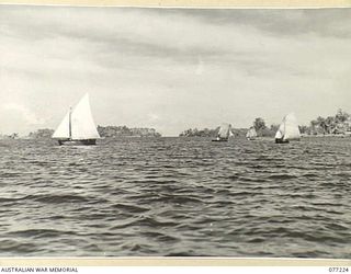 MADANG, NEW GUINEA. 1944-12-14. A SAILING BOAT RACE IN PROGRESS DURING THE 2/4TH ARMOURED REGIMENT SPORTS AFTERNOONAustralian War MemorialImage Papua New Guinea Online