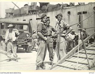 MADANG, NEW GUINEA. 1944-12-14. THE AMERICAN LIBERTY SHIP, "FRANCIS PARKMAN" PULLING OUT FROM THE WHARF WITH TROOPS AND TANKS OF THE 2/4TH ARMOURED REGIMENT ABOARD THE AITAPEAustralian War MemorialImage Papua New Guinea Online