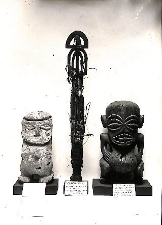 Photo of three carved objects with museum labelsTe Puna Vai Marama Cook Islands Centre for ResearchImage Cook Islands Online -