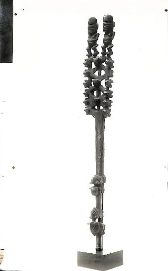 Photo of 2 male figures carved on wooden cane (X33)Te Puna Vai Marama Cook Islands Centre for ResearchImage Cook Islands Online -