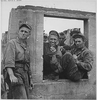 Marines pause at Agat during lull in battle for recapture of Guam.National Archives at College Park - Still PicturesImage