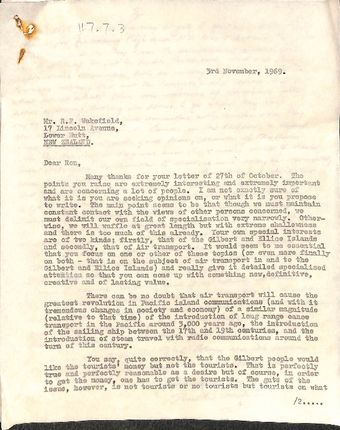 Letter from Alan Ward to Michael Somare, Prime Minister of Papua New GuineaTe Puna Vai Marama Cook Islands Centre for ResearchText Cook Islands Online -
