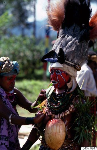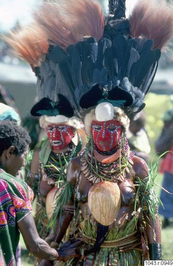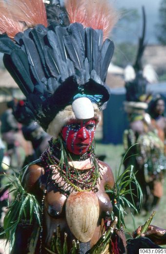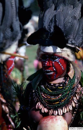 ["huvudbonad, ansiktsmålning, fotografi, photograph"]Museum of EthnographyType Unknown Papua New Guinea -