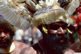 ["man, ansiktsmålning, skägg, huvudbonad, porträtt, fotografi, photograph"]Museum of EthnographyType Unknown Papua New Guinea -