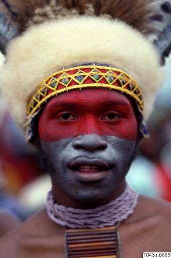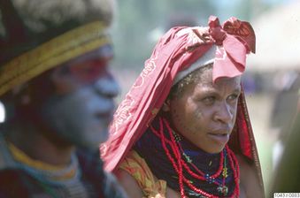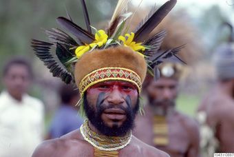 ["ansiktsmålning, man, huvudbonad, porträtt, kvinna, fotografi, photograph"]Museum of EthnographyType Unknown Papua New Guinea -