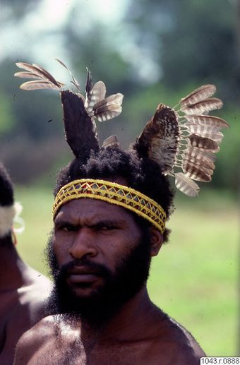 ["porträtt, man, halsband, huvudbonad, fotografi, photograph"]Museum of EthnographyType Unknown Papua New Guinea -