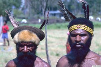 ["skägg, porträtt, män, huvudbonad, fotografi, photograph"]Museum of EthnographyType Unknown Papua New Guinea -