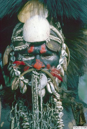 ["huvudbonad, ansiktsmålning, porträtt, fotografi, photograph"]Museum of EthnographyType Unknown Papua New Guinea -