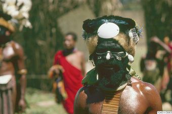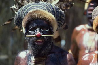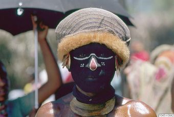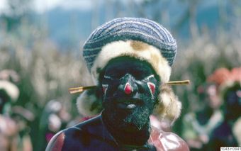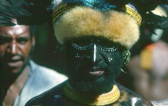 ["man, porträtt, huvudbonad, ansiktsmålning, fotografi, photograph"]Museum of EthnographyType Unknown Papua New Guinea -
