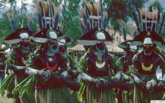 ["män, huvudbonad, ansiktsmålning, porträtt, fotografi, photograph"]Museum of EthnographyType Unknown Papua New Guinea -