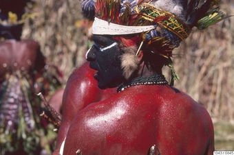 ["ansiktsmålning, man, huvudbonad, porträtt, fotografi, photograph"]Museum of EthnographyType Unknown Papua New Guinea -