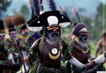 ["porträtt, huvudbonad, ansiktsmålning, män, fotografi, photograph"]Museum of EthnographyType Unknown Papua New Guinea -