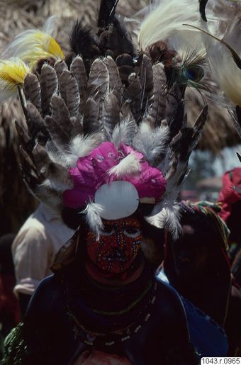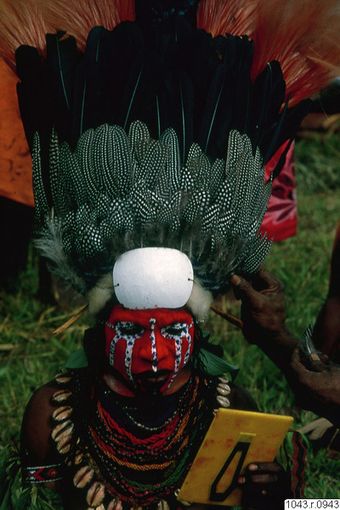 ["huvudbonad, ansiktsmålning, fotografi, photograph"]Museum of EthnographyType Unknown Papua New Guinea